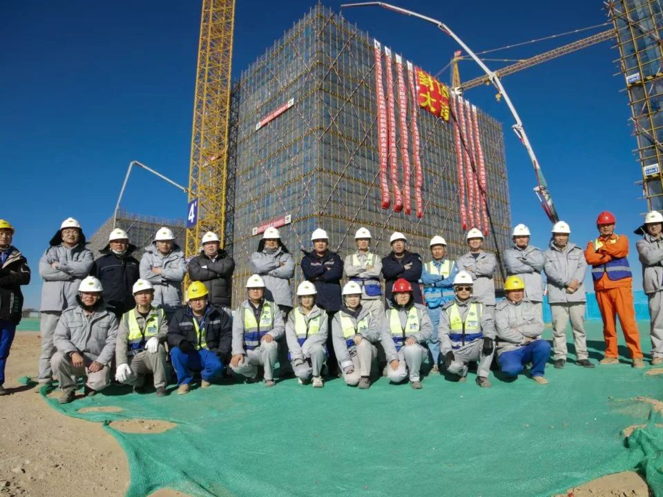 中化六建公司項目經理郭世天說,本次封頂澆筑作業是在寒冷天氣條件下進行的高空作業,面臨著低溫對混凝土凝固速度的影響以及高空作業的安全風險等多重挑戰。為了確保施工順利進行,卓正、中化六建、監理公司相互協調,共同制定了一套詳盡的施工方案。在施工前雙方進行了全面的技術交底,確保每一個環節都萬無一失。通過周密的準備工作和嚴格的現場管理,封頂任務圓滿完成。